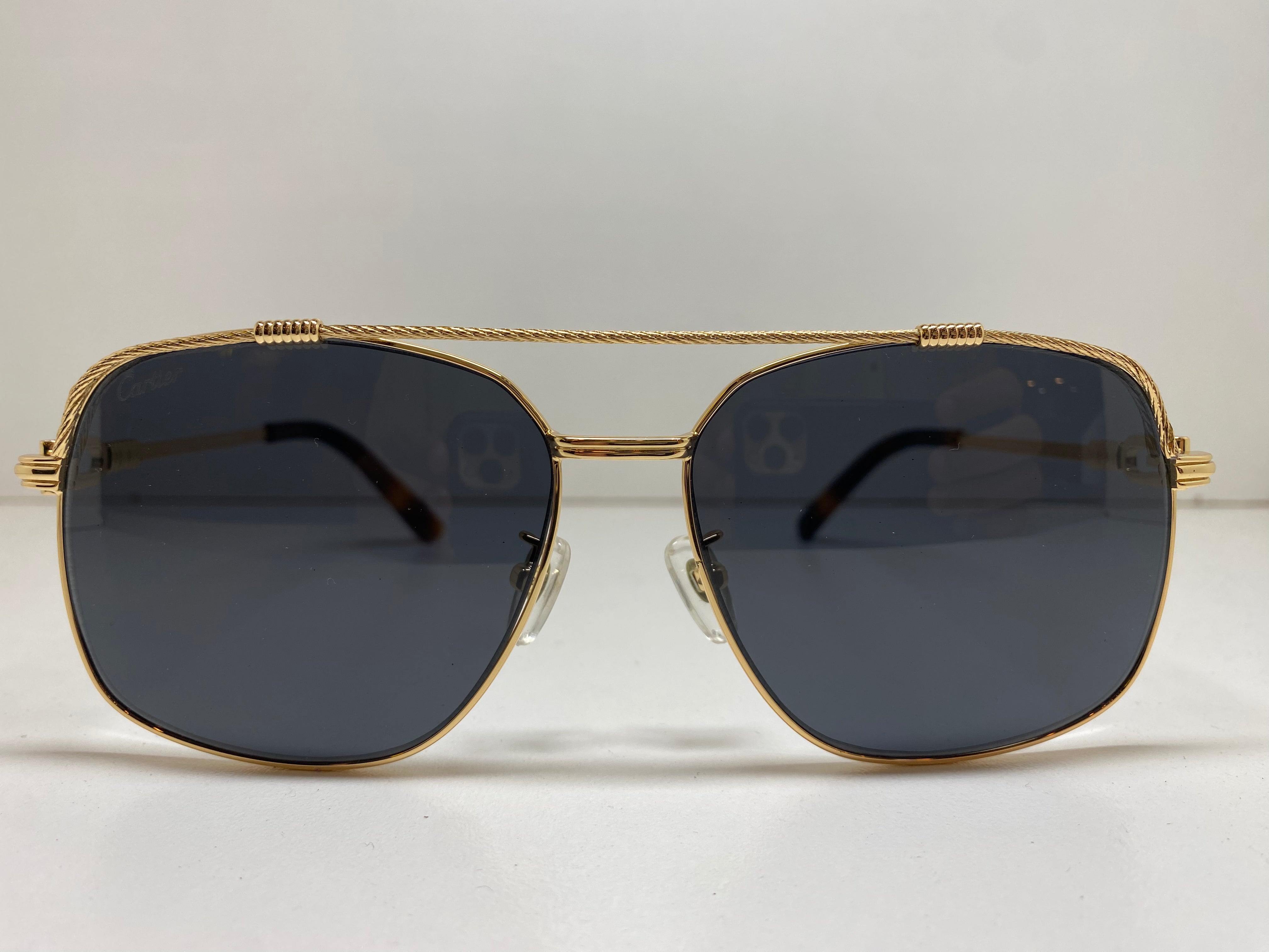 Introducing the Cartier CT0128S sunglasses, a perfect blend of elegance and style. Crafted with precision using high-quality metal, these sunglasses offer durability and a sleek, contemporary design. The Gray and Golden Stick variant exudes sophistication, while the Brown Two Tone and Golden Stick option adds a touch of uniqueness. For a modern and trendy look, choose the Gray Two Tone and Golden Stick variant. Make a bold fashion statement and elevate your style with these exceptional Cartier sunglasses.