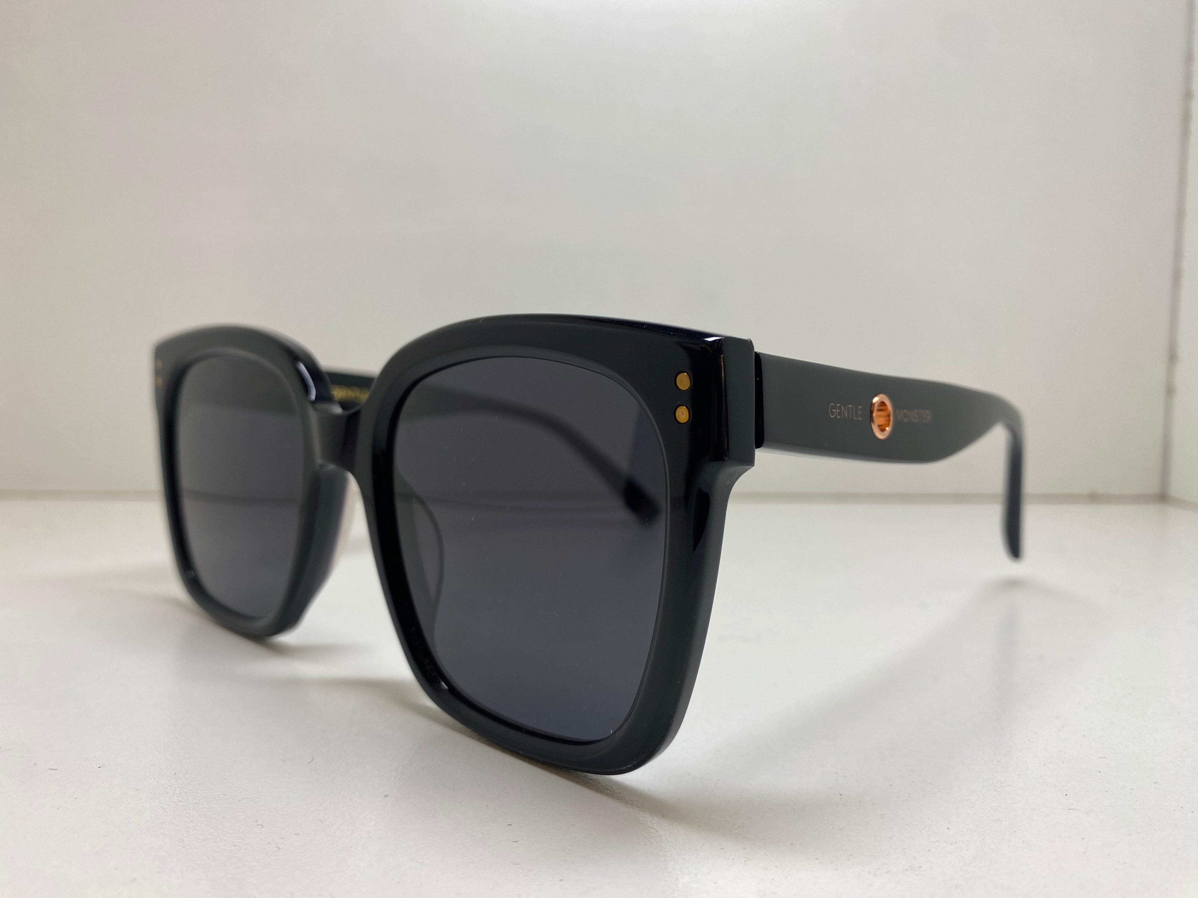 Introducing the Gentle Monster KUKU sunglasses, a bold and stylish accessory that combines contemporary design with exceptional craftsmanship. The Dark Gray variant exudes a sense of mystery and sophistication. With its black stick detailing on the temples, these sunglasses offer a sleek and modern aesthetic.
